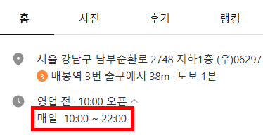 - 휴무일은 매장별로 다르며 공휴일에 휴무하는 경우가 많으니 전화 확인이 안전합니다